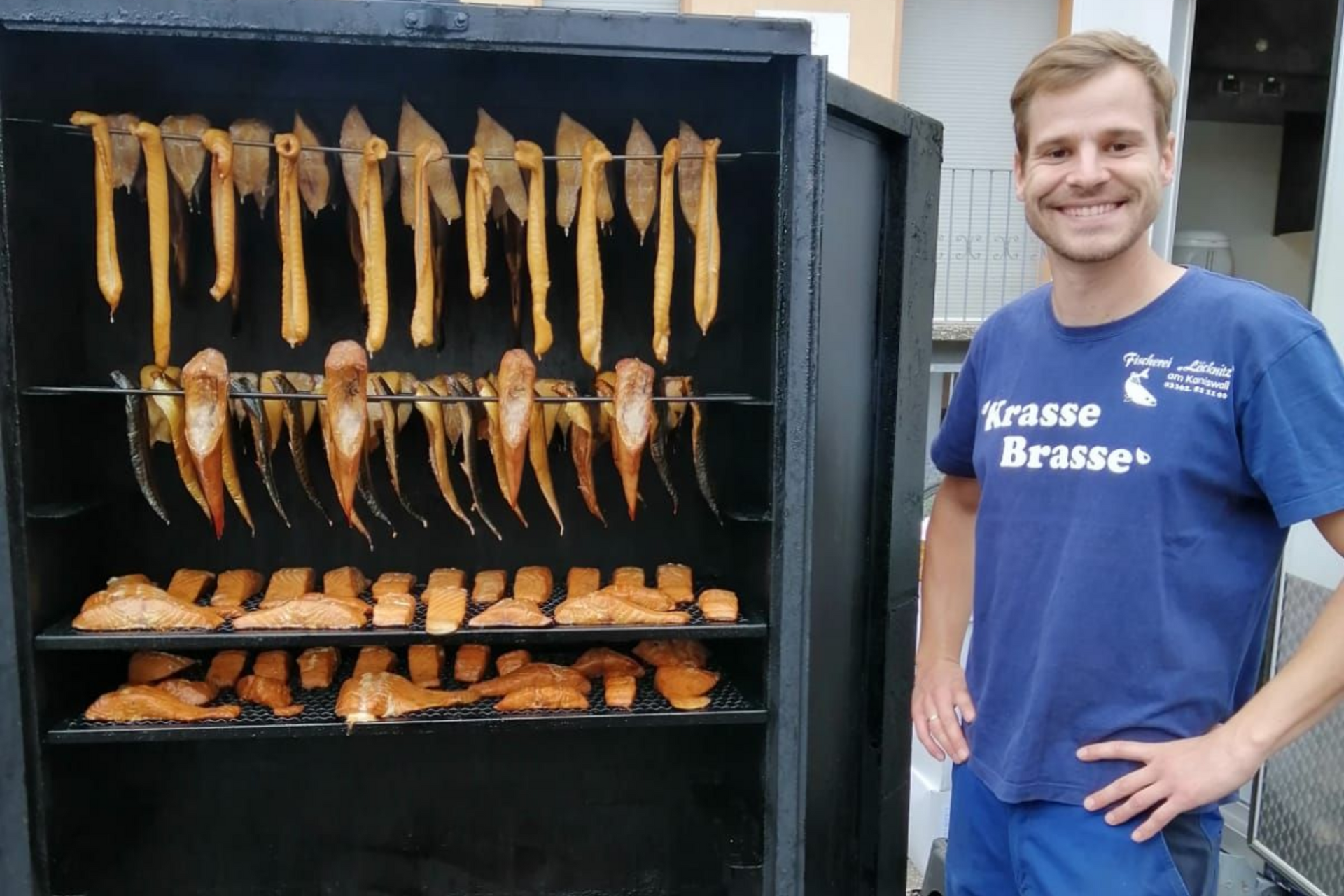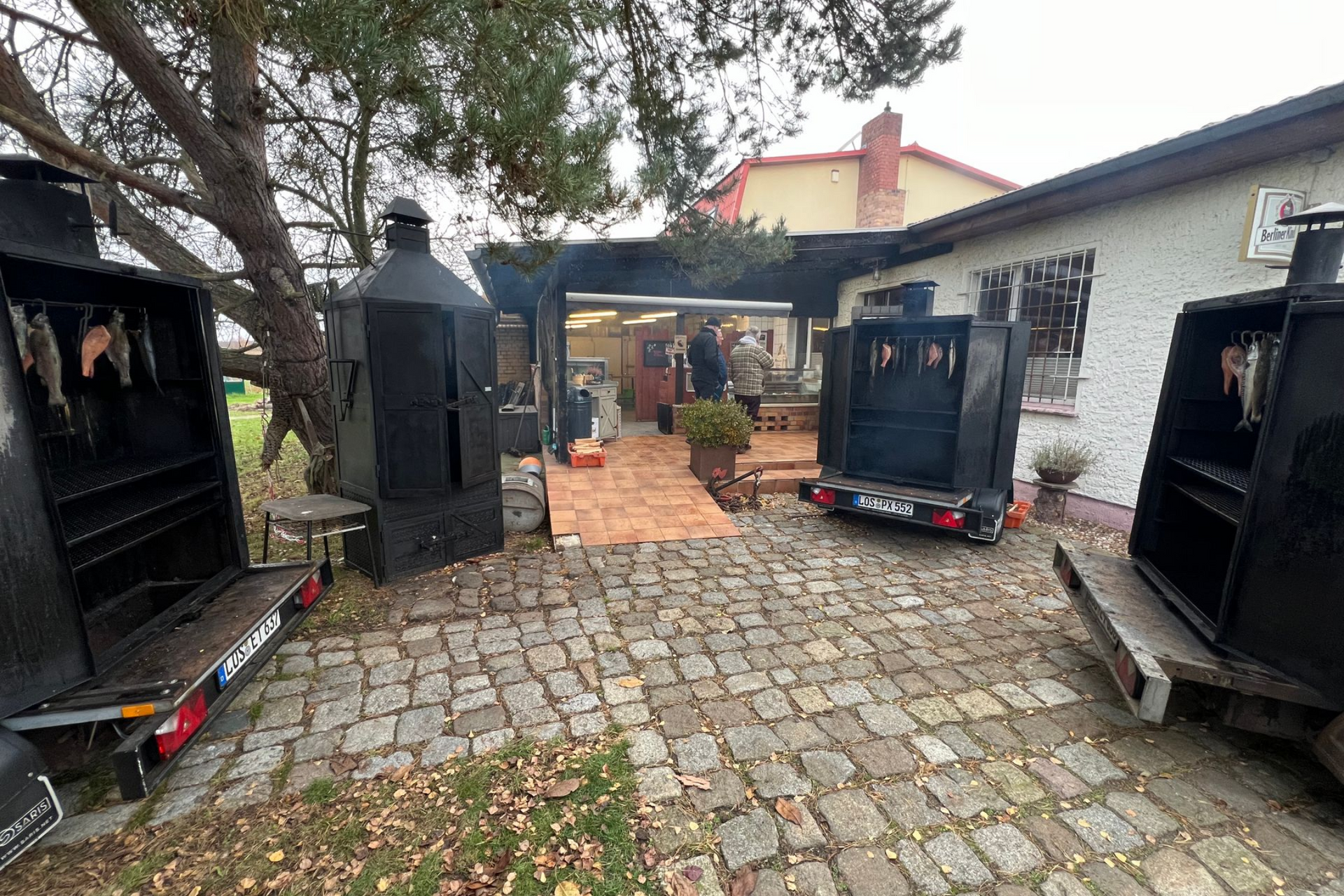 Für größere Gruppen (ab etwa 15 Personen) empfehlen wir Ihnen, unsere mobile Räucherei und einen Räuchermeister bei uns zu mieten. Punktgenau zur Eröffnung Ihrer Party, Ihrer Firmenfeier oder Hochzeit öffnet sich die Tür des Räucherofens und Ihre Gäste werden von uns mit gesunden und wohlschmeckenden Fischen verwöhnt.